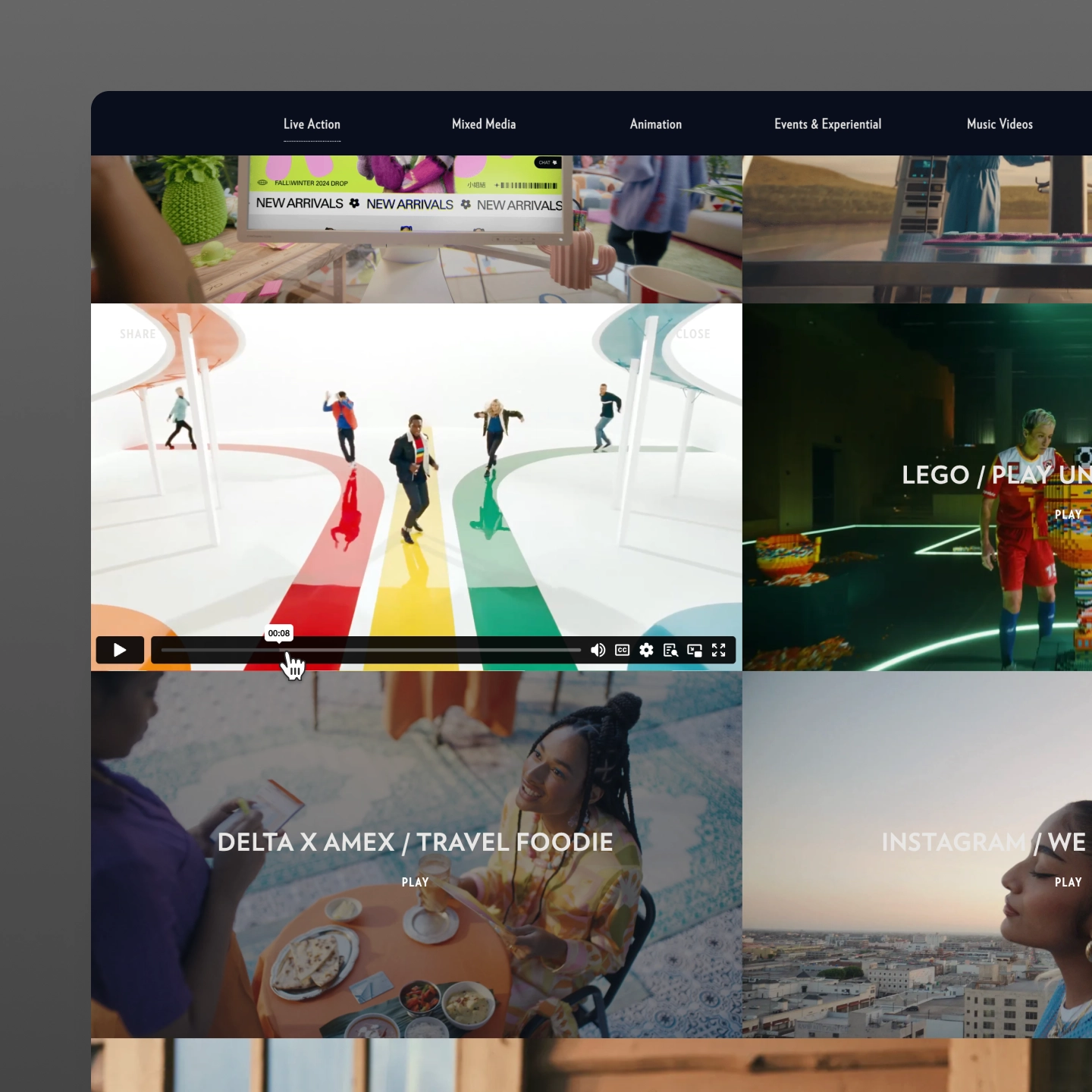 We used Webflow's publishing and CMS features to make content management simple for the team. A responsive CSS grid layout preserved the 16:9 aspect ratio of every video across desktop, tablet, and mobile. We layered in auto-play video and custom interactions to elevate the viewing experience and reflect the quality of the content itself.