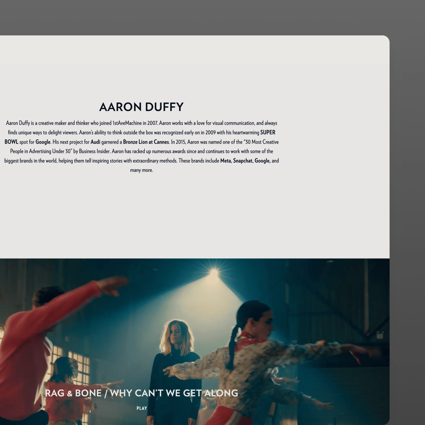 1stAveMachine's existing website wasn't keeping pace with the caliber of their work. As an award-winning video production company creating content for major brands and global media companies, they needed a faster, more fluid site that could showcase a growing portfolio of high-end video across every device.