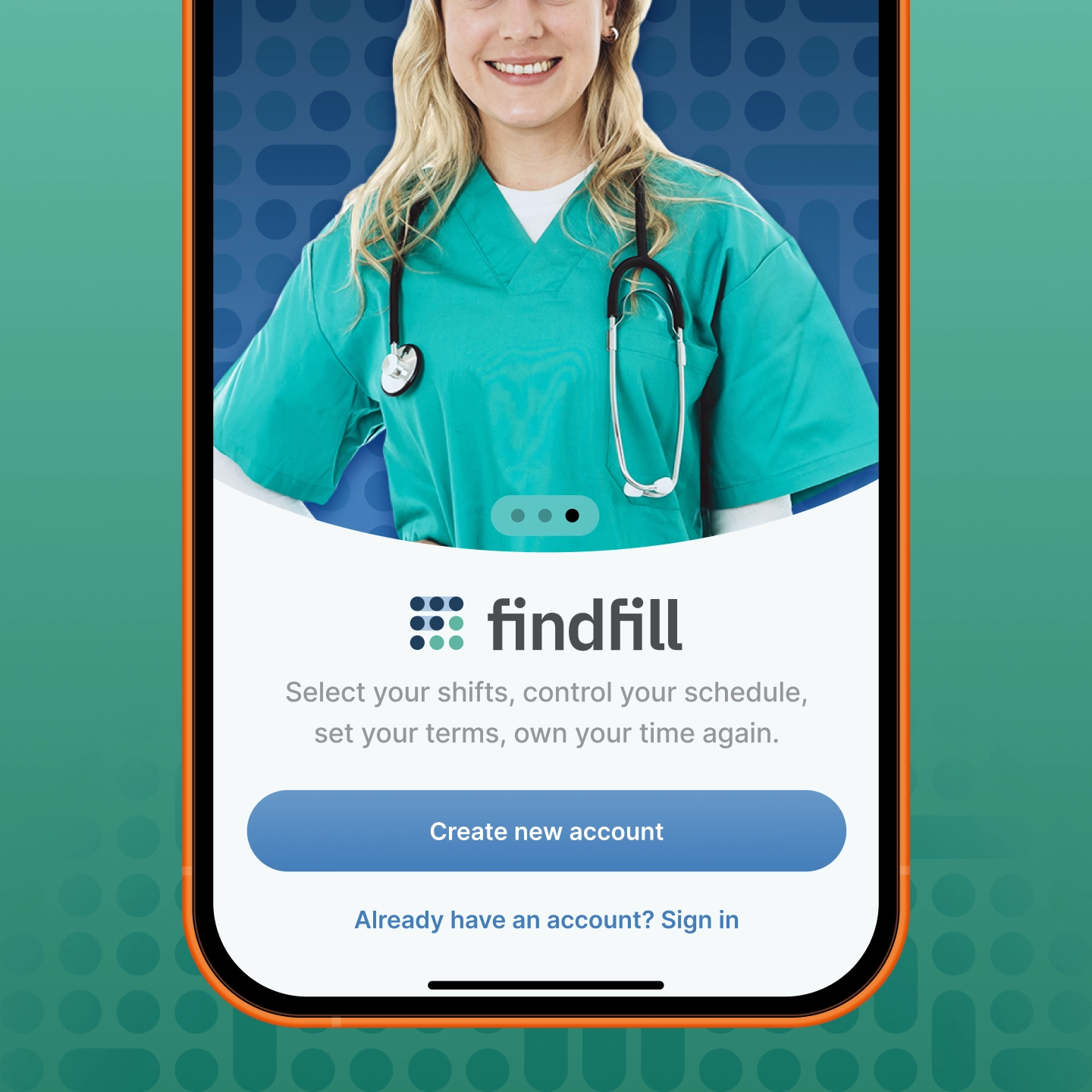 Big Pixel built the FindFill mobile app for Nurse First: a geolocation-based job marketplace that connects verified nurses with open healthcare positions in their area, with real-time shift updates and a clear path from signup to job-ready.