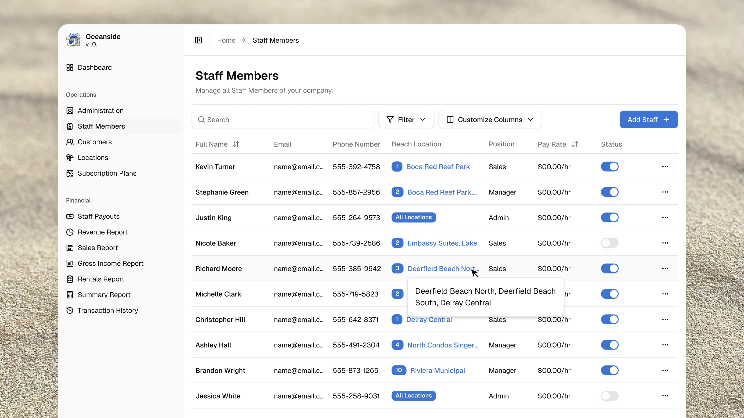 Oceanside now runs more reliable payments, cleaner booking execution, and a smoother front desk operation. Staff move faster, customers check in without friction, and the platform supports the day-to-day experience it was built for.