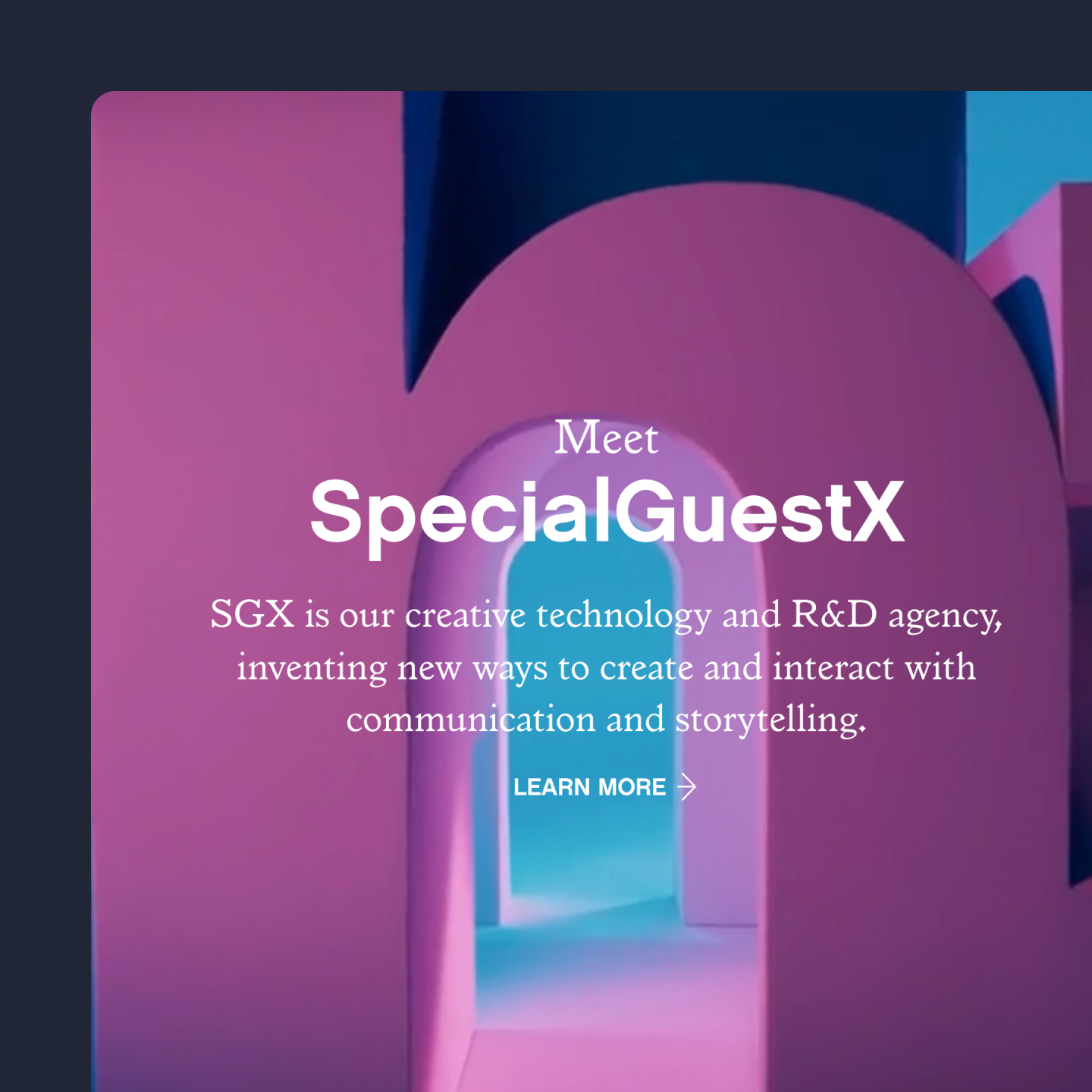 Big Pixel handled development and all animations for the Special Guest site, bringing their design vision to life in Webflow with a CMS that makes managing an ever-growing portfolio simple for their team.